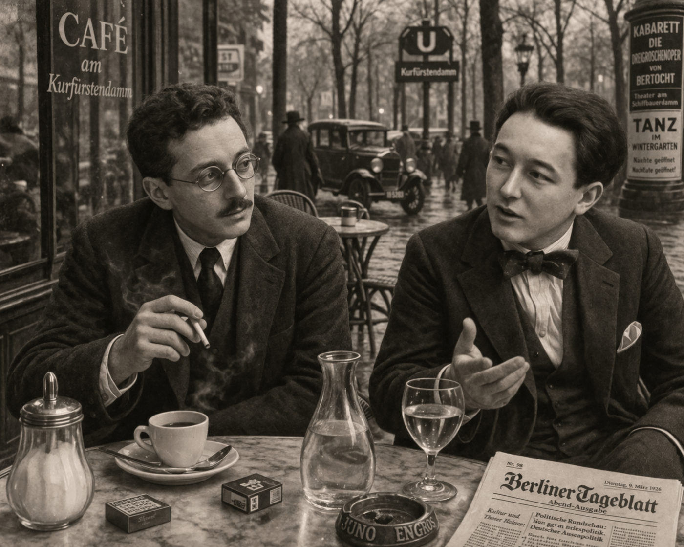 Je n’ai pas quitté Berlin juste après ma mission diplomatique. Deux personnes passionnées de littérature m’attendaient, en effet, ce soir même, au bas de mon hôtel donnant sur la Spree. Une idée folle m’a traversé l’esprit. Faire se rencontrer ces deux amis à moi – Max Brod et Alexandre Vialatte – pour lesquelles j’ai beaucoup d’estime, avec pour mission de mener à bien un projet qui me tient à cœur.